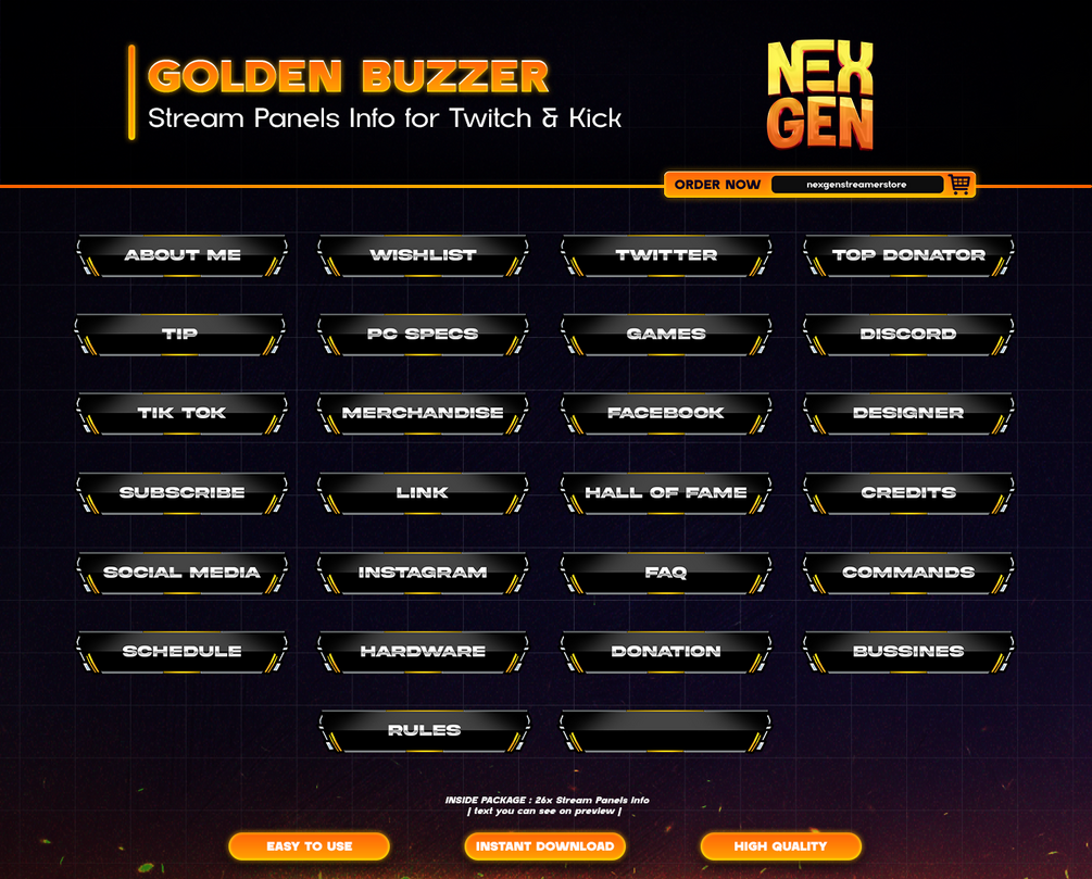 26x Golden Buzzer Stream Panels Info for Twitch & Kick Channel.