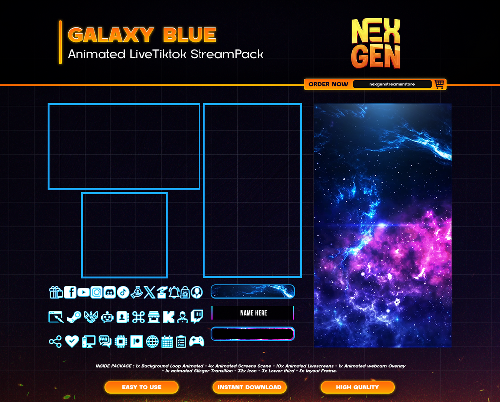 GALAXY BLUE NEBULA ANIMATED STREAM PACKAGE OVERLAY for Tiktok Live Stream.